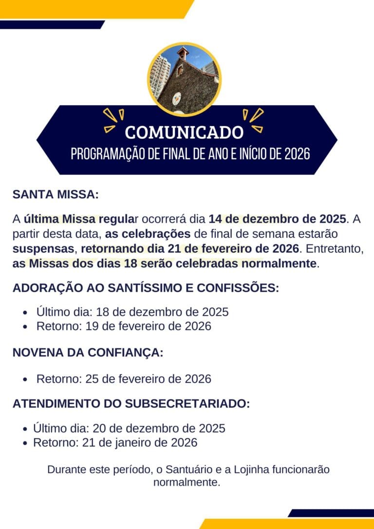 O Segundo Domingo do Advento nos faz penetrar mais profundamente no grande mistério da salvação do mundo. “Teu Santuário é nossa Nazaré oculta em tempos lúgubres, sem fé. Gabriel teu sim, ó Mãe, solicitou e por teu Fiat, no mundo a luz brilhou.” Como naquele tempo, o Fiat da Mãe de Deus possibilitou a Salvação […]