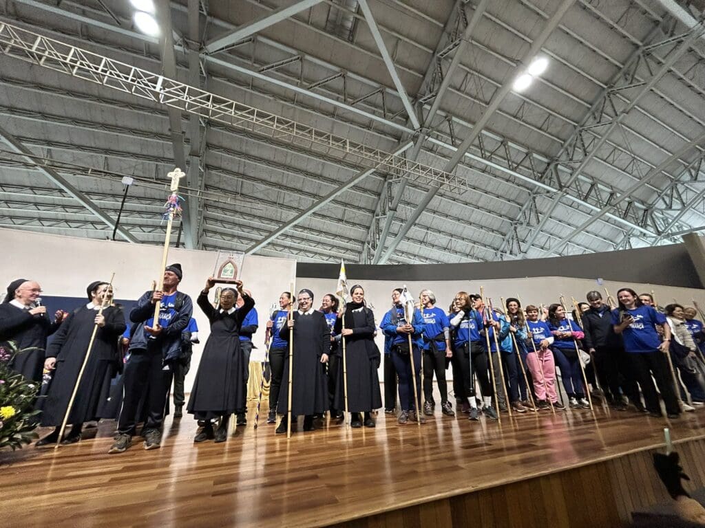 “Neste 6 de julho de 2025, ano jubilar — jubileu da esperança — peregrinos da esperança e da esperança que não decepciona, estamos aqui no Santuário Nacional de Aparecida com o movimento da Mãe Rainha, a Mãe Três Vezes Admirável de Schoenstatt, um movimento que está há 75 anos presente no Brasil. Desde 1950, com o diácono João Pozzobon. E hoje, com pessoas do Brasil todo, estamos aqui para render graças a Deus e pedir as luzes do Espírito Santo para que o movimento continue sendo mariano e missionário. Mariano, porque vai com Maria, ela nos dá força; e missionário, porque vai de casa em casa, também aos hospitais, nas prisões, com a juventude. Deus abençoe o movimento da Mãe Rainha!”
