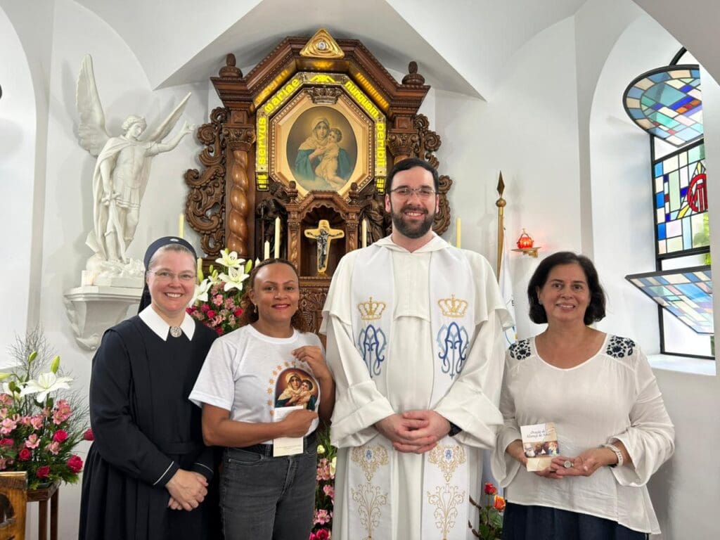 Cristiane Bezerra da Silva, da Paróquia Cristo Libertador (Diocese de Campo Limpo), compartilhou o quanto essa entrega foi construída em meio a desafios. “Passei por momentos difíceis e a Mãe não me abandonou. Iniciei no movimento com a minha família, fui convidada a ser missionária num período muito complicado da minha vida, quando enfrentei o drama do meu filho envolvido com drogas. Apoiada na Mãe e em Jesus Cristo, vi a misericórdia do Senhor agindo em minha casa.”