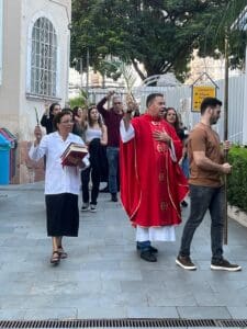 Com ramos nas mãos, os fiéis entoaram cânticos de louvor, revivendo o momento em que o povo acolheu Jesus como Rei e Salvador. Esse gesto, carregado de simbolismo, expressa não apenas alegria, mas também o compromisso de acompanhar Cristo em seu caminho de entrega, paixão e ressurreição.