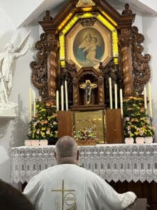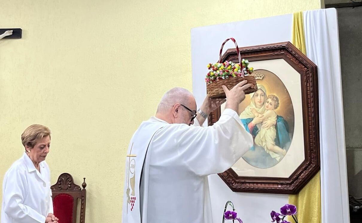 No final da celebração, o sacerdote levou as rosinhas até o altar, ofertando-as à Mãe de Deus como símbolo das muitas preces elevadas durante o mês missionário.