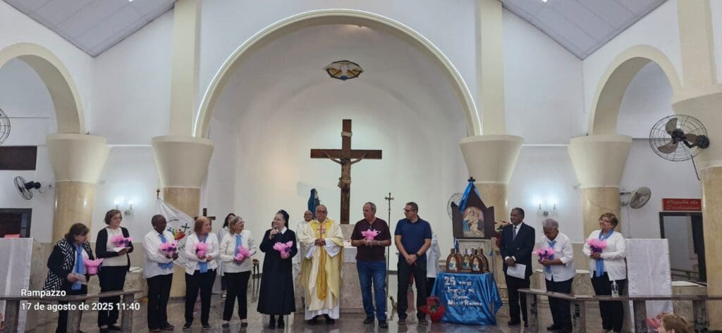 A Missa Jubilar, em ação de graças pelo Jubileu de Prata do Movimento Mãe Rainha na paróquia, reuniu missionários, famílias e devotos que, ao longo dessas décadas, mantêm viva a chama da devoção mariana.