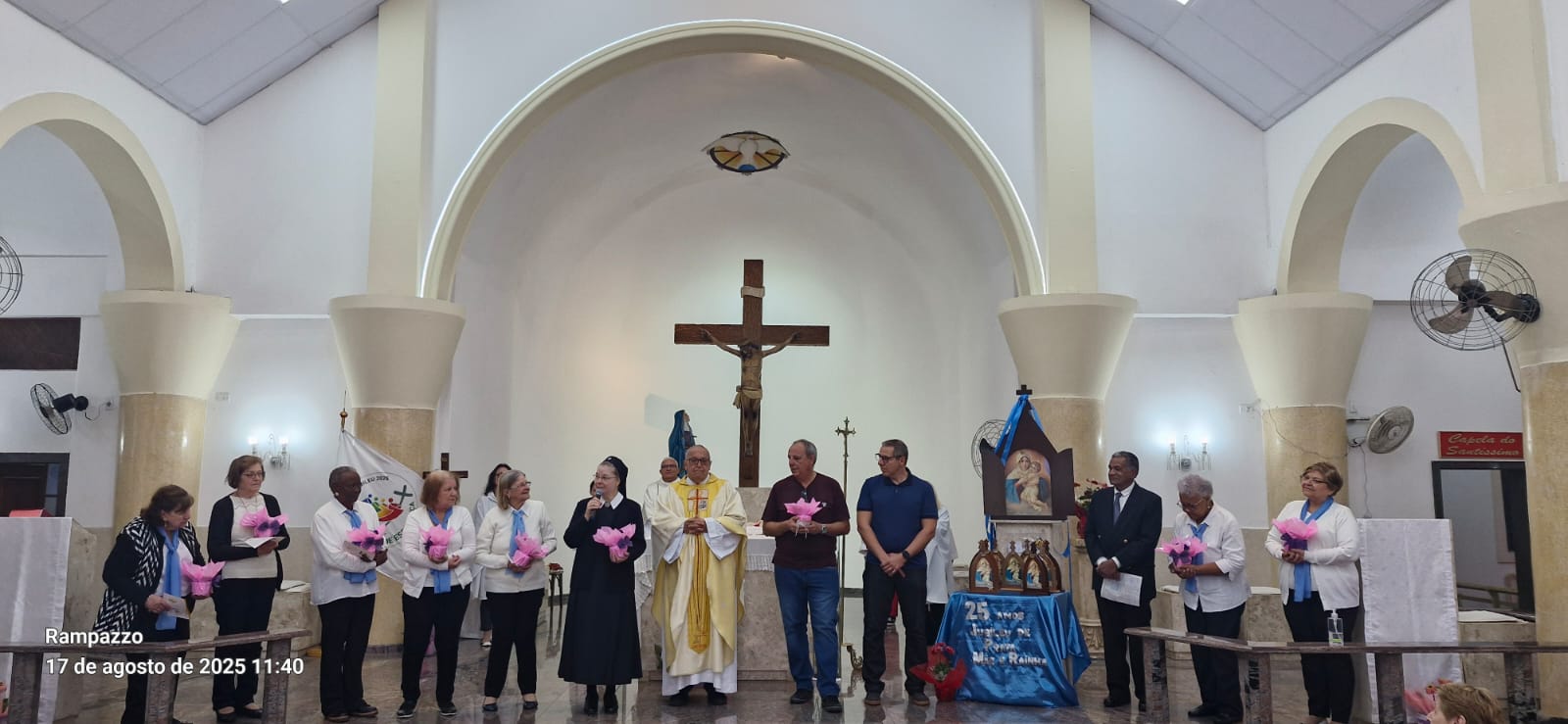 A Eucaristia foi marcada por gratidão, comunhão e alegria, recordando todo o caminho percorrido desde que a Imagem da Mãe Três Vezes Admirável chegou à comunidade. A celebração contou com a presença da Ir. M. Sandra Maieski, do Santuário da Vila Mariana, que participou desse momento especial de oração e unidade.