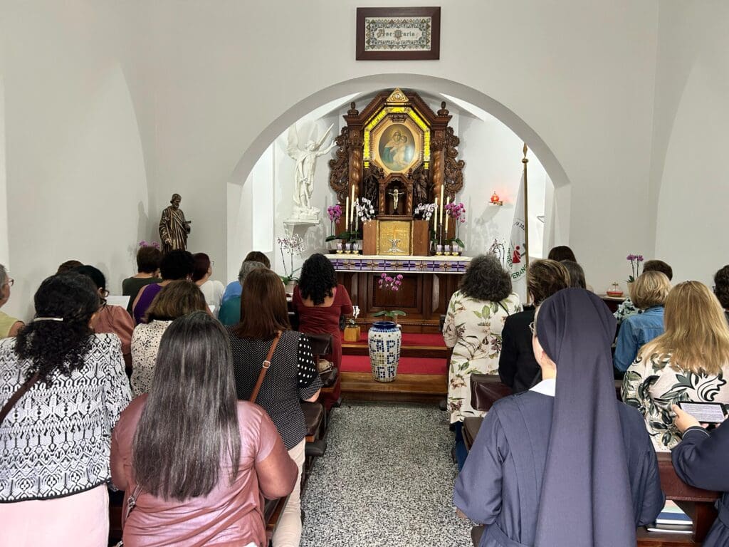 O evento teve início com um momento de espiritualidade conduzido pelas Irmãs de Maria. Entre orações e reflexões, os participantes renovaram seu compromisso missionário diante de Cristo e da imagem da Mãe de Deus, reafirmando: “Aqui é bom estar!”. Ir. M. Talita de Oliveira, com sua alegria e cantos, enriqueceu o encontro, trazendo momentos de leveza e entusiasmo para todos os presentes. O local da reunião trouxe lembranças para muitos, relembrando o início de suas trajetórias missionárias.