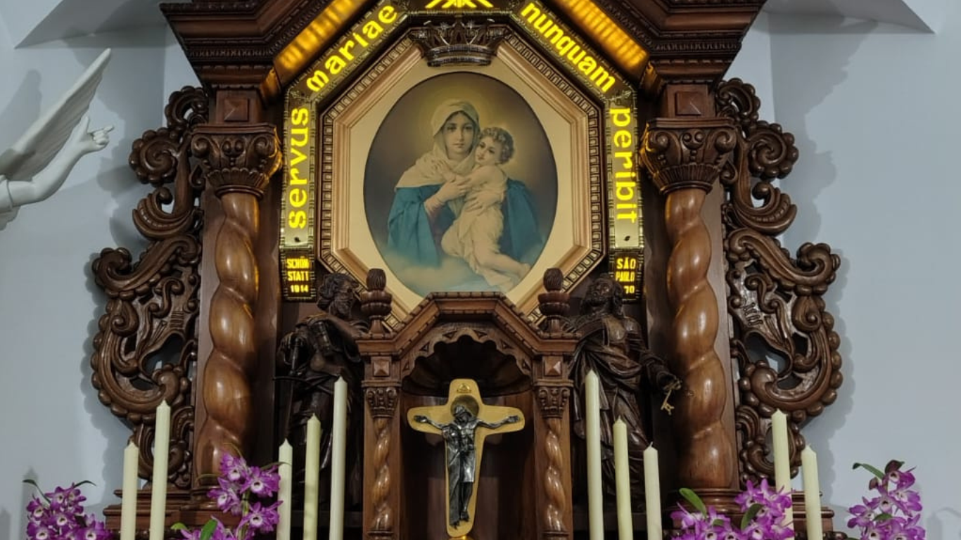 No último domingo, 19 de outubro, o Santuário Tabor da Confiança Vitoriosa no Pai, na Vila Mariana, viveu um momento de profunda emoção e graça. Antes da Santa Missa, três crianças — Tais, Maria Cecília e Pedro foram consagradas à Mãe e Rainha Três Vezes Admirável de Schoenstatt, em uma bela celebração que uniu famílias, fé e devoção mariana.