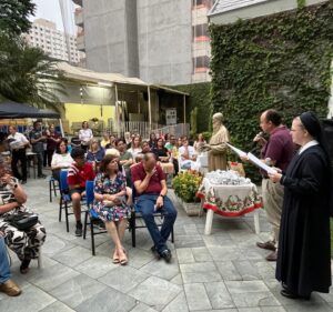 A celebração começou com a procissão de entrada, enriquecida pela presença das bandeiras dos ramos do Movimento. Um dos momentos mais marcantes foi o acendimento da primeira vela da Coroa do Advento, a vela verde, simbolizando esperança e vida. O gesto convidou os presentes a refletirem sobre a luz de Cristo, que dissipa as trevas e renova o coração.