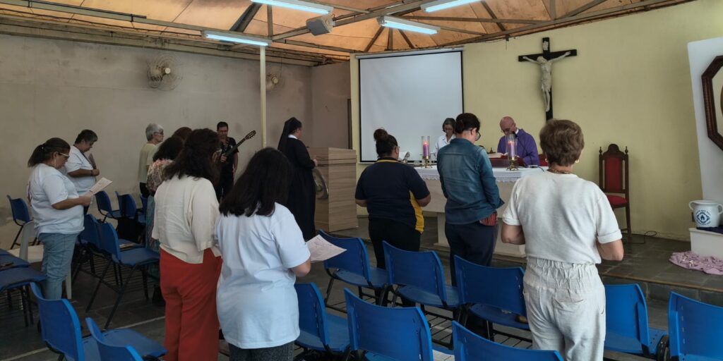 No último domingo, 22 de março, aconteceu a Oficina Inicial de Formação para Coroação, no Santuário de Schoenstatt da Vila Mariana, um momento especial de aprofundamento espiritual e preparação para aqueles que desejam coroar a Mãe e Rainha em seus Santuários-Lares. O encontro foi conduzido por Maria Rita Vianna e reuniu participantes dispostos a compreender mais profundamente o significado deste gesto tão característico da espiritualidade de Schoenstatt.
