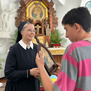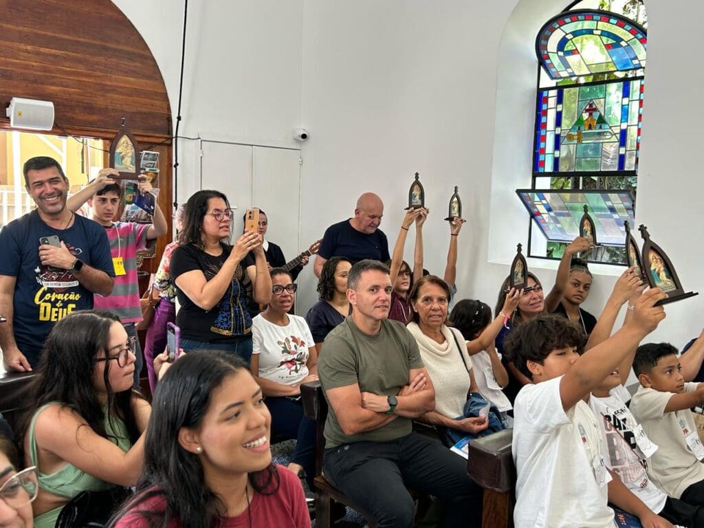 “Hoje foi uma experiência abençoada para mim e para meus filhos. Ser missionário é ensinar a orar, a ajudar o próximo, a transformar o coração. Foi emocionante vê-los receber essa missão. Que eles possam levar a esperança a muitas outras crianças com a Mãe e Rainha, Três Vezes Admiravél de Schoenstatt.”