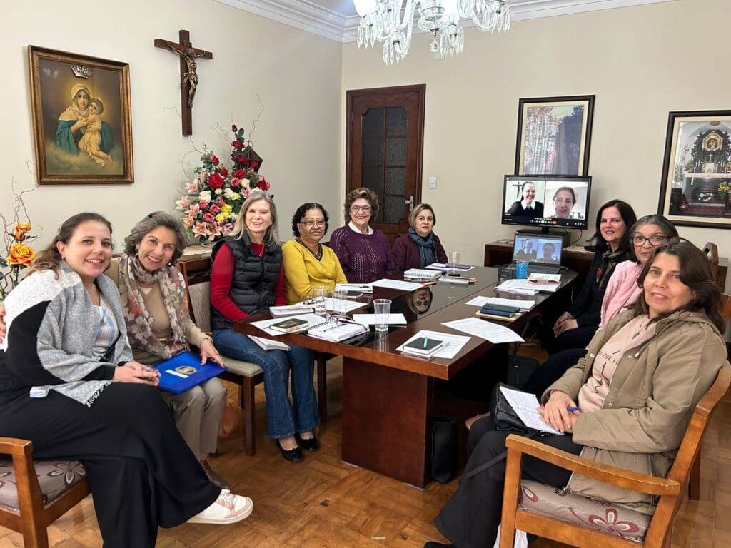 Durante a reunião, Irmã M. Sandra Maieski, por videoconferência, dirigiu uma saudação formativa às dirigentes, destacando a importância da constante renovação do espírito de liderança e da missão confiada a cada mãe no Movimento. Suas palavras reforçaram a necessidade de retomarmos os conteúdos formativos como uma oportunidade de crescermos como dirigentes comprometidas com a Obra.