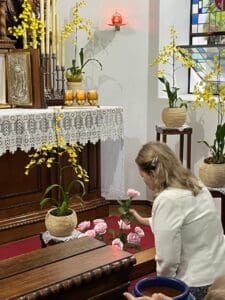 Durante a celebração, os fiéis também participaram de um momento especial de devoção: cada pessoa foi convidada a oferecer uma rosa à Mãe de Deus. O gesto, cheio de significado, simbolizou a entrega das alegrias, lutas e intenções de cada um, refletindo a confiança vitoriosa na intercessão de Nossa Senhora.