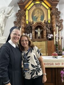 Maria do Socorro, uma das novas Guardas, expressou sua emoção ao receber a missão: ” Viver esse momento de envio como Guarda do Santuário é uma grande bênção para mim. Antes, eu não conhecia bem essa missão, mas, ao entender seu significado, senti no coração o desejo de servir. Quero acolher cada peregrino com carinho e ajudá-los a se sentirem em casa neste lugar sagrado. Que a Mãe de Deus me guie e abençoe nesta caminhada!”