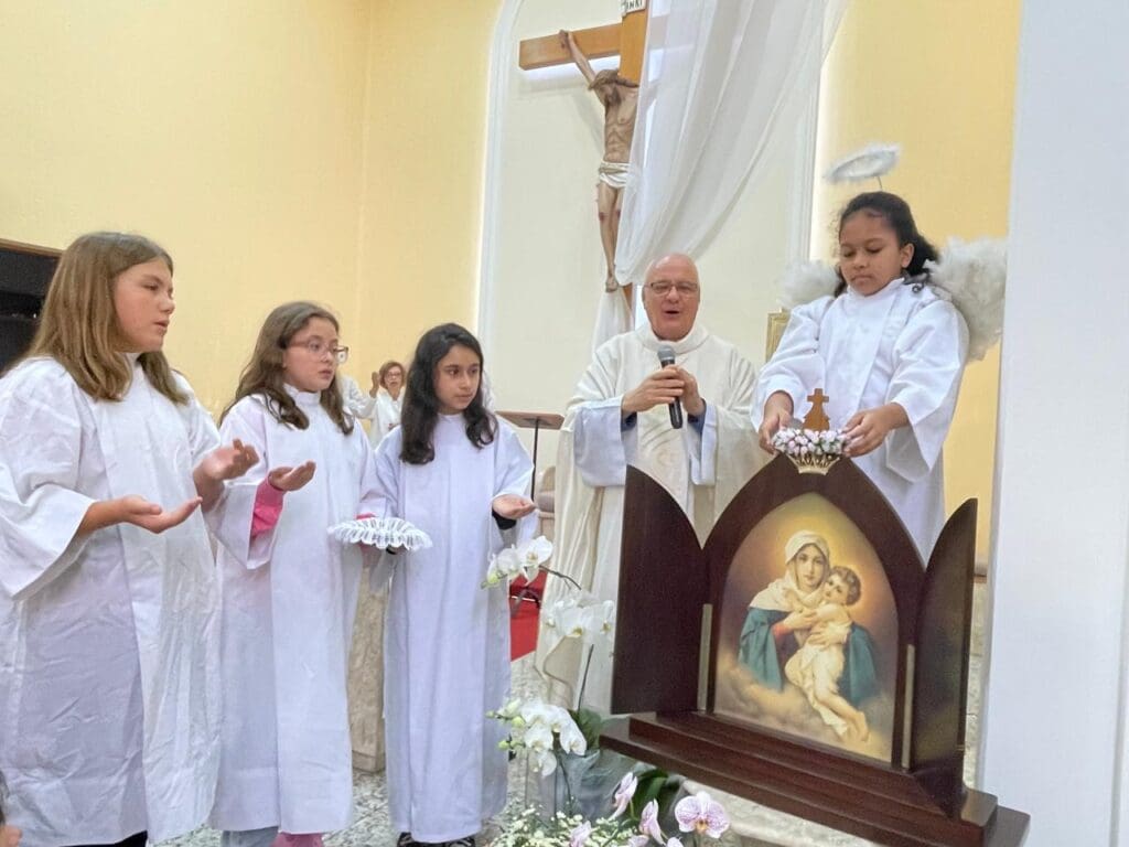 “Com a Mãe Peregrina, caminhando na esperança”: esse foi o lema que guiou a Semana Mariana deste ano na Paróquia São João Batista, no Decanato São Mateus da Região Episcopal Ipiranga. Entre os dias 2 e 12 de maio, a comunidade viveu intensamente a espiritualidade mariana com momentos de oração, reflexão e vivência concreta da fé, especialmente em torno da Campanha da Mãe Peregrina de Schoenstatt.