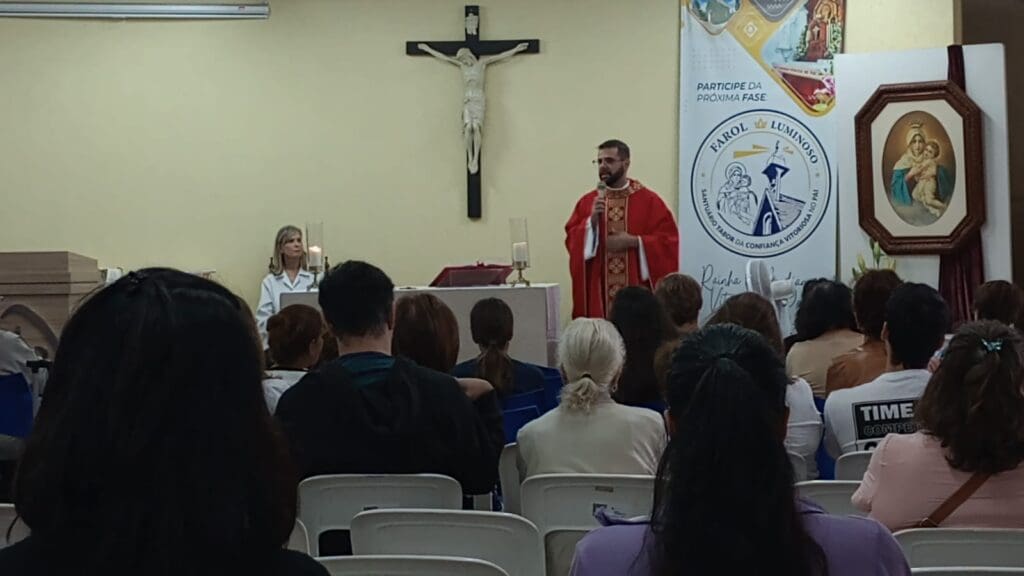 Na última sexta-feira, dia 18, os fiéis se reuniram com devoção para renovar a Aliança de Amor com a Mãe, Rainha e Vencedora Três Vezes Admirável de Schoenstatt, no Santuário de Graças, localizado na Vila Mariana, em São Paulo. A celebração começou com a missa das 12h, presidida pelo Pe. Aloizio José Nunes de Azevedo Junior, da paróquia Santa Zita, em Santana, que contou com uma grande presença de devotos, incluindo uma romaria vinda do Jaçanã. O clima era de animação e confiança, com os participantes sentindo fortemente a presença de Maria e renovando seu compromisso de fé.