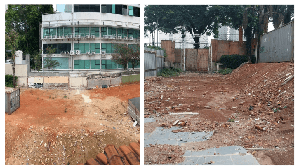 A demolição das construções antigas foi realizada com sucesso, e já finalizamos as obras da loja e dos novos banheiros, essenciais para o conforto dos peregrinos.