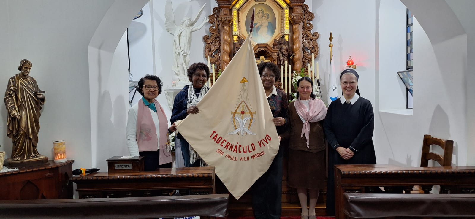 Celebrar este aniversário no Santuário, junto à Santa Missa presidida pelo Pe. William, foi um momento de forte espiritualidade e gratidão. Foram unidos, no mesmo altar, a entrega de um jovem sacerdote que coloca sua vida nas mãos de Maria e a história de tantas mulheres que, ao longo de 105 anos, seguem trilhando o caminho aberto por Gertraud von Bullion.